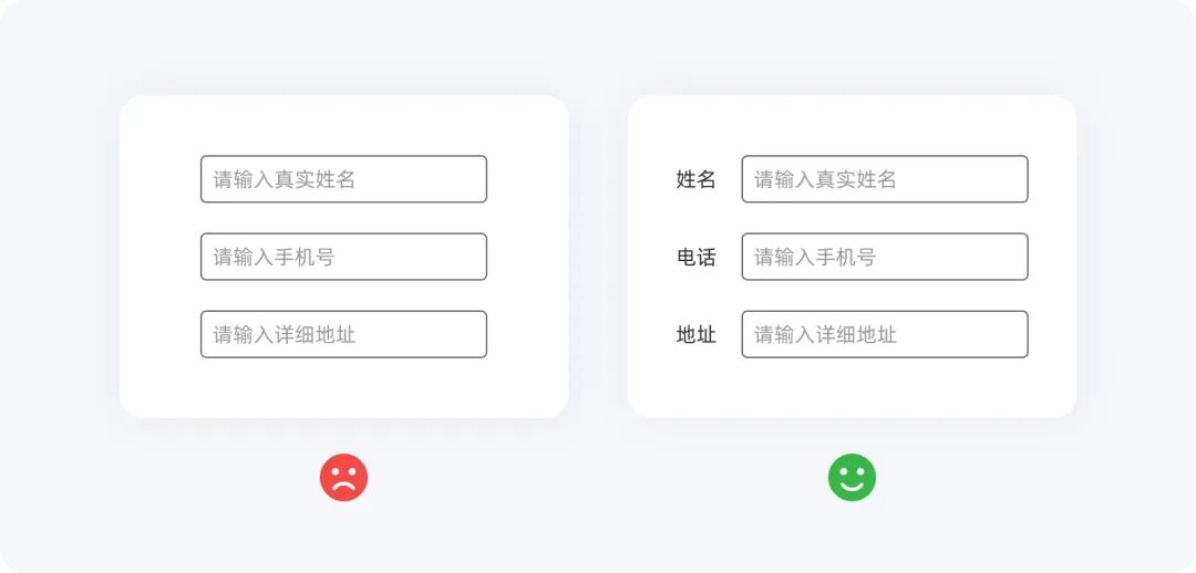 輸入框中的占位符可以為用戶提供初步的指引,幫助他們在開始輸入前有一個短期的記憶提示。理想情況下,占位符應作為標簽的補充。然而,如果只有占位符而沒有標簽,用戶可能會感到困惑,尤其是在他們點擊輸入框后占位符消失時,可能會一時記不起要輸入的內容。