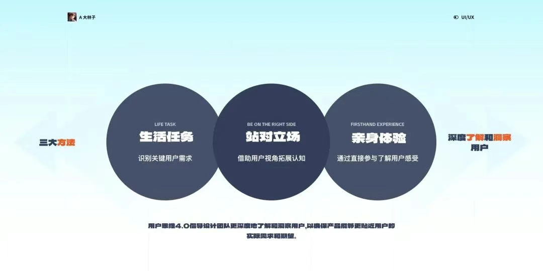通過直接參與了解用戶感受 最直接的了解用戶的方式是親身體驗。通過設計團隊成員親自參與用戶使用產品的過程,能夠更深刻地感受用戶的需求和體驗。這一方法不僅提供了實際的用戶反饋,還能夠從設計者的角度直觀地感知用戶的情感和體驗,為產品的優化提供實質性的依據。 通過這三大方法,用戶思維4.0倡導設計團隊更深度地了解和洞察用戶,以確保產品能夠更貼近用戶的實際需求和期望。