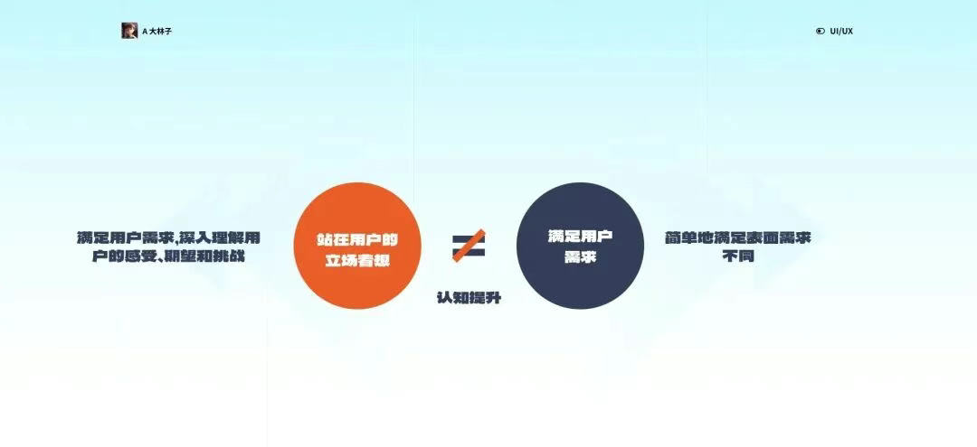 3. 明確3:要「站在用戶的立場著想」,而不是「滿足用戶需求」 這一認知挑戰了以往滿足用戶需求的思維模式。不僅要了解用戶的需求,更要站在用戶的視角,深入理解他們的痛點和欲望。通過這種方式,設計可以更好地貼合用戶的實際體驗,而不僅僅是單純地提供功能。