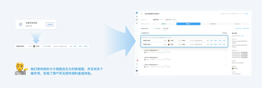 在不同系統平臺的適配過程中,我們特別注重交互模式的靈活性和適應性,以適應不同的適用場景。例如,我們將傳統的卡片視圖優化為列表視圖,并支持多個操作項,實現了用戶所見即所得的直觀體驗。