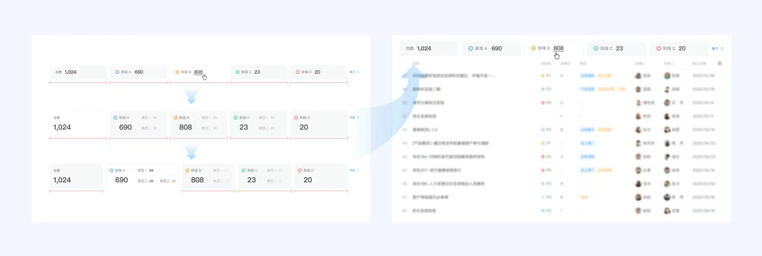 在一些管理場景下會涉及到既需要查看各階段下不同狀態的概覽數據,又需要查看詳細數據的場景。