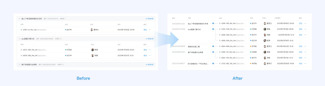 在一些既需要關注結構化的概覽數據又要方便查看詳細數據的場景中,以及在一些數據關聯、任務串聯等場景中,設計側通過可視化、結構化等設計手段探索出了一些新的業務組件,解決了數據概覽、數據關聯不清晰等問題,為用戶構建了直觀、易懂的使用體驗。
