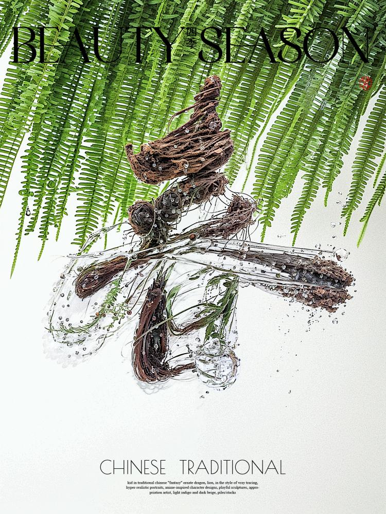 • 國潮品牌主題:圖 9 “仙” 字海報,把書法筆觸與山水紋理結合,搭配 “Chinese Tea” 的英文標識,讓 “中式茶” 的文化屬性通過書法字體自然流露。