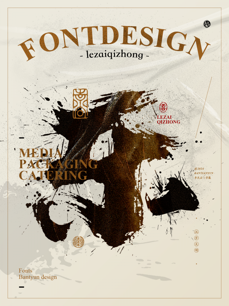 在海報構圖中,書法字體是天然的 “視覺核心”,同時能構建多層節奏: