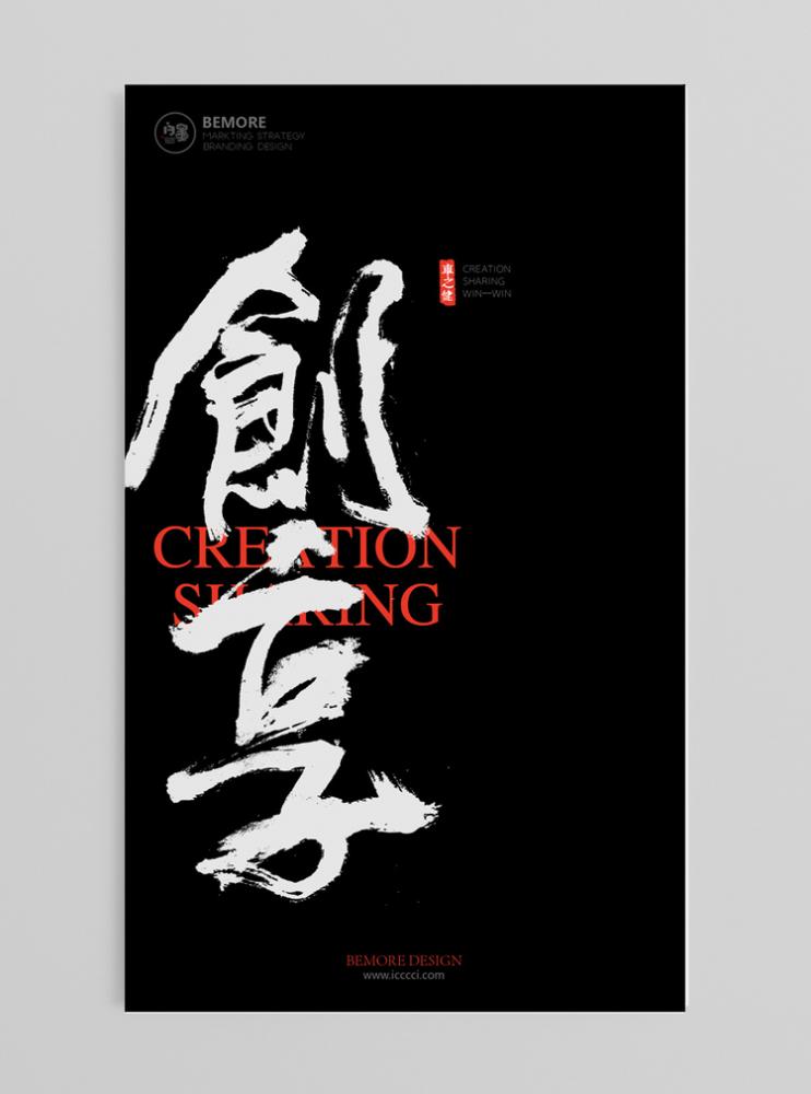 • 狂草的張力:像圖 4 “創享” 海報,飛白的筆觸、大開大合的結構,將 “創享的熱烈” 直接通過線條的動感傳遞,黑底白字的對比更放大了這種酣暢感;
