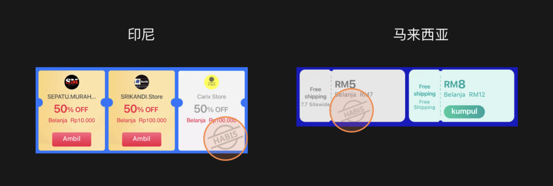 比如說優惠券的 Ran out 狀態,印尼和馬來都是 Habis, 都代表結束的意思。