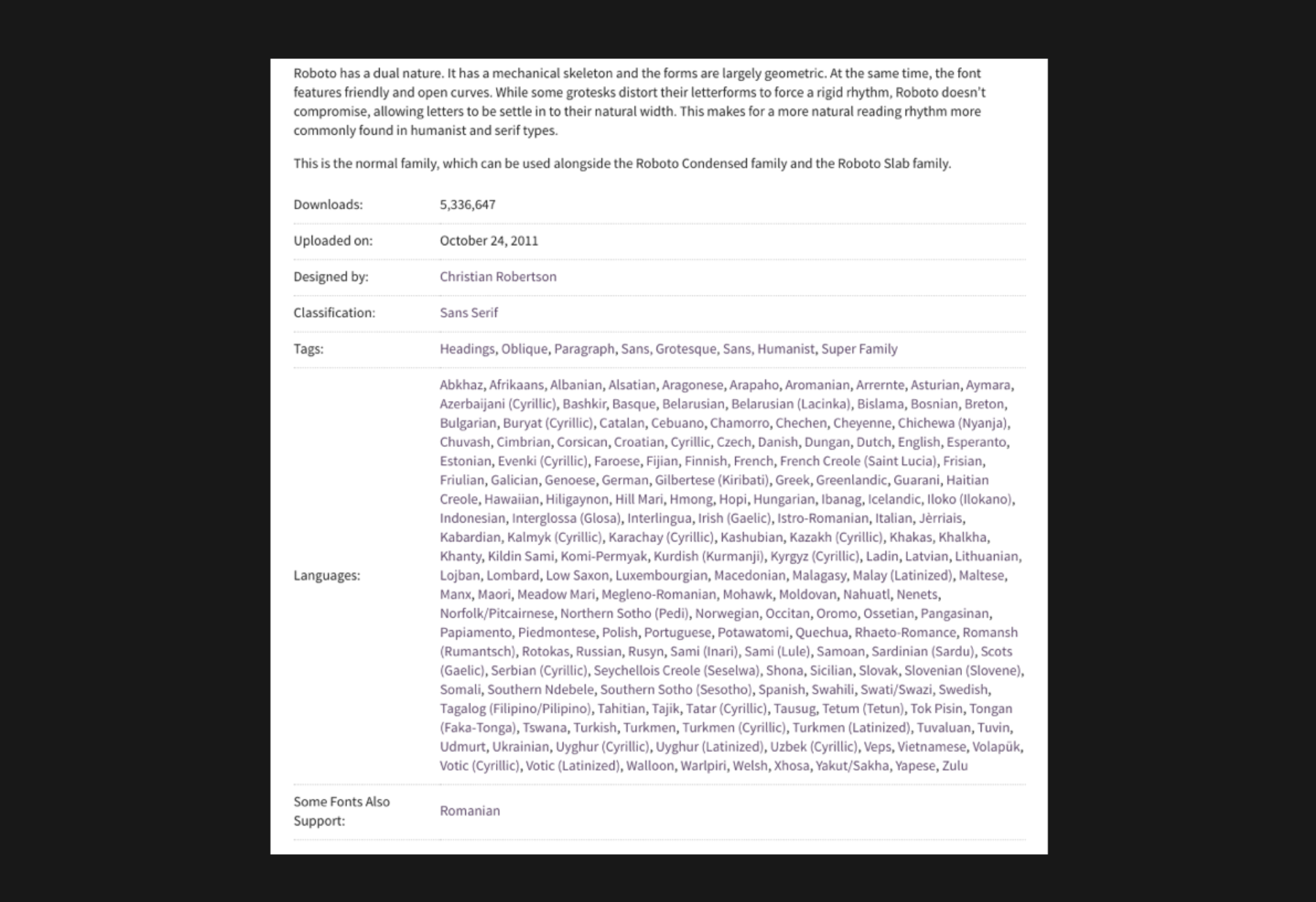 Robot / Noto Sans / Proxima Nova。這三個字體是東南亞國家使用的比較多的,也能夠適配于泰語、印尼語、越南語和馬來語。再分享一個字體網站 FontSquirrel,這個網站可以按照語言和風格查找字體。