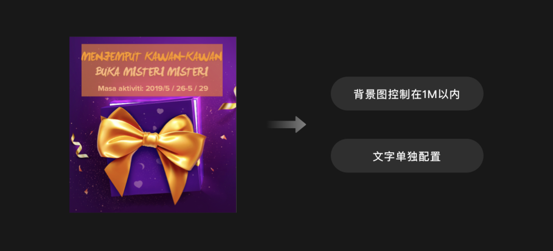 注意不要將文字直接嵌入圖片或視頻媒體中,需要分別以較小的個體進行存儲,便于替換。交付給開發 GG 的圖片也必須壓縮一下,不能超過 1M,不然會影響加載速度。