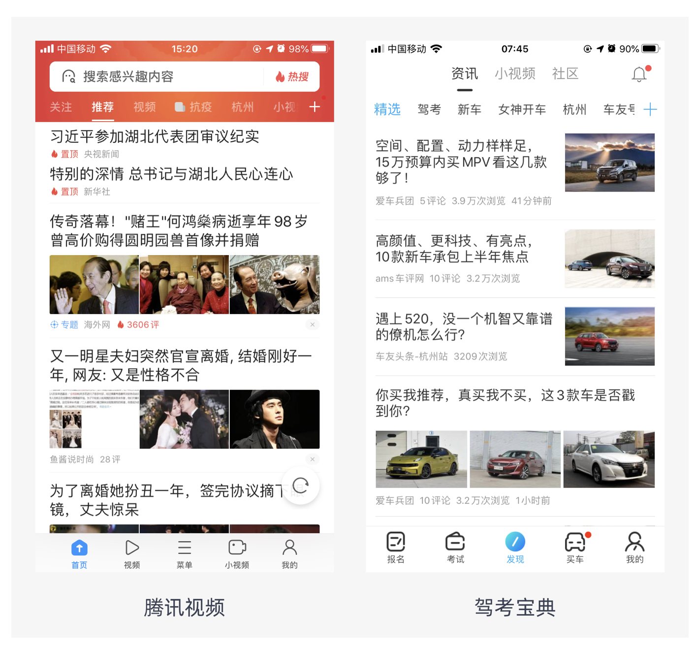 常見的布局方式有左右布局和上下布局,多用于新聞資訊類產(chǎn)品中。比如駕考寶典的資訊頁面,采用上下布局,每條資訊以標(biāo)題為主,搭配輔助圖片,讓用戶能快速了解內(nèi)容概要;騰訊視頻的資訊板塊則運用左右布局,左側(cè)是標(biāo)題和簡要內(nèi)容,右側(cè)是相關(guān)圖片,便于用戶快速篩選感興趣的信息。