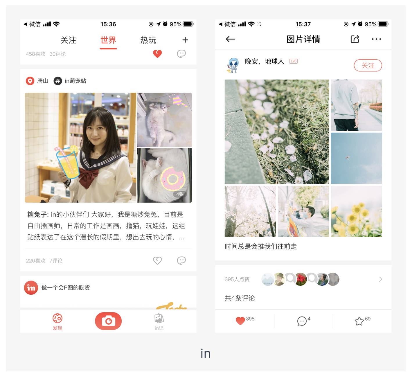 這種布局方式是將幾張圖片拼成一個矩形,樣式新穎類似雜志的排版,對圖片質(zhì)量要求較高,多應(yīng)用在圖片社交中,如 in。通過獨特的拼圖方式,能讓圖片展示更具創(chuàng)意和吸引力,增強用戶的視覺體驗。