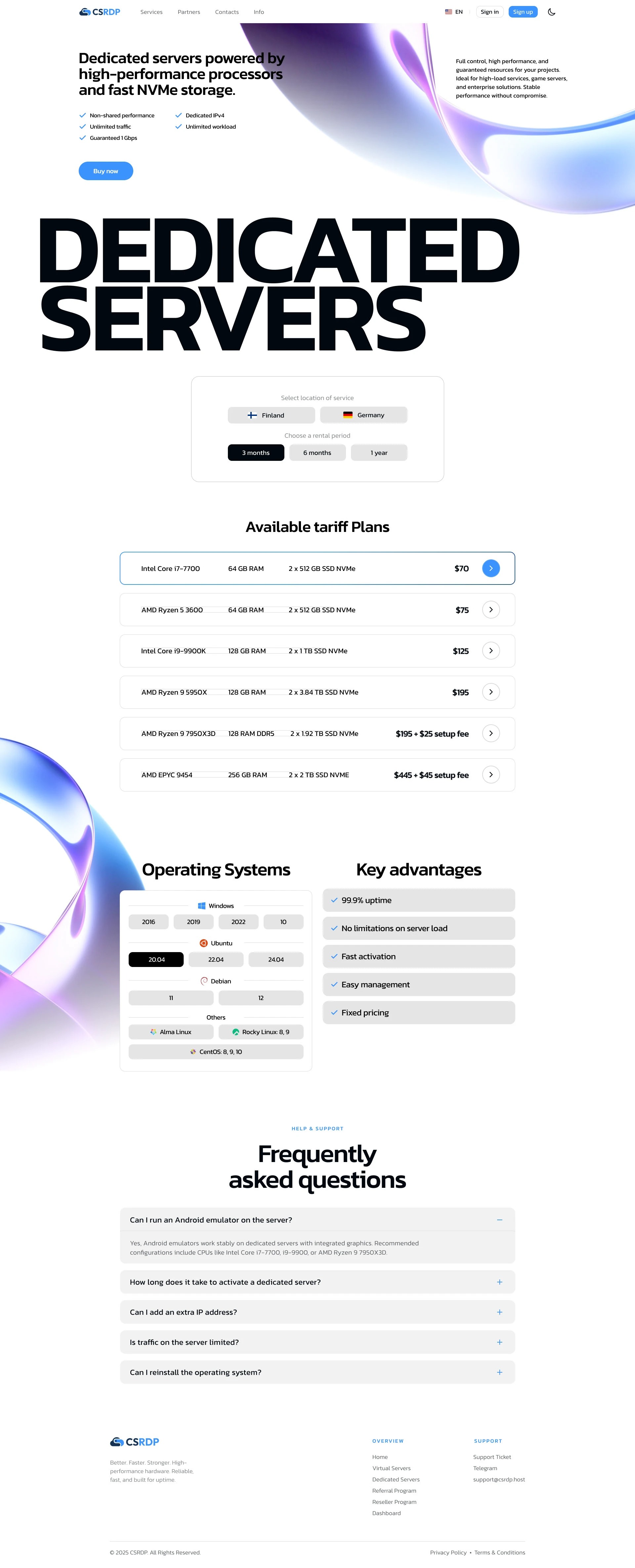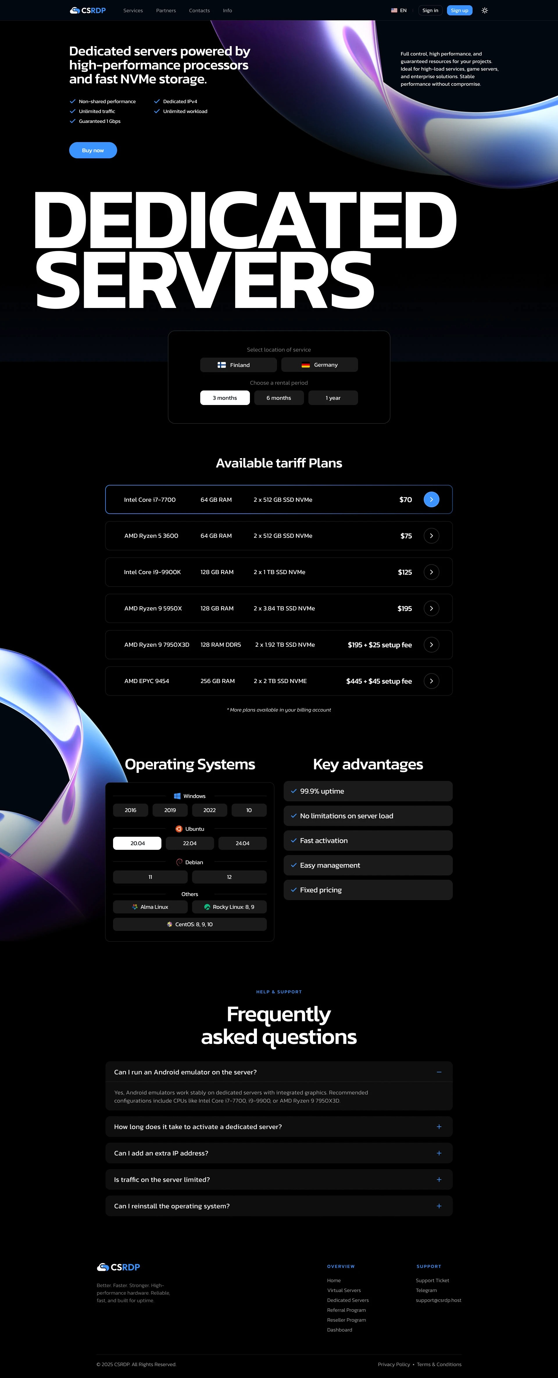 “Virtual Servers”和“Dedicated servers”兩大核心產品分區簡明。