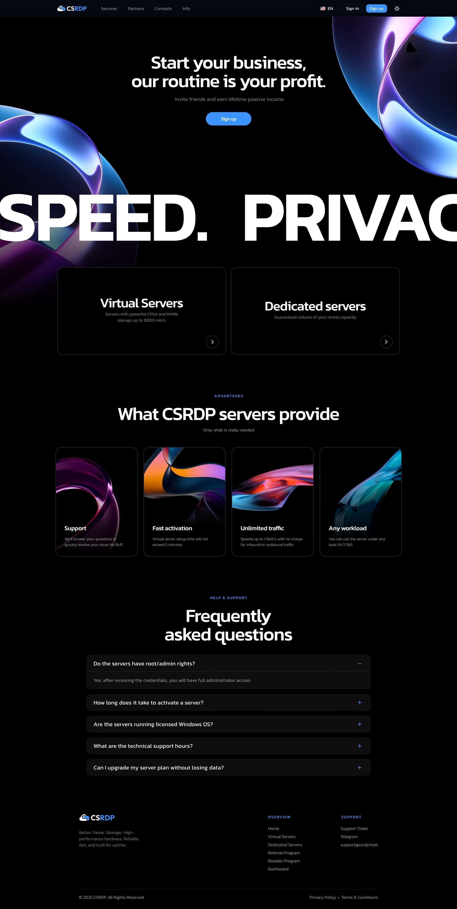 大號標題“Start your business, our routine is your profit”簡潔有力,明確核心價值主張。