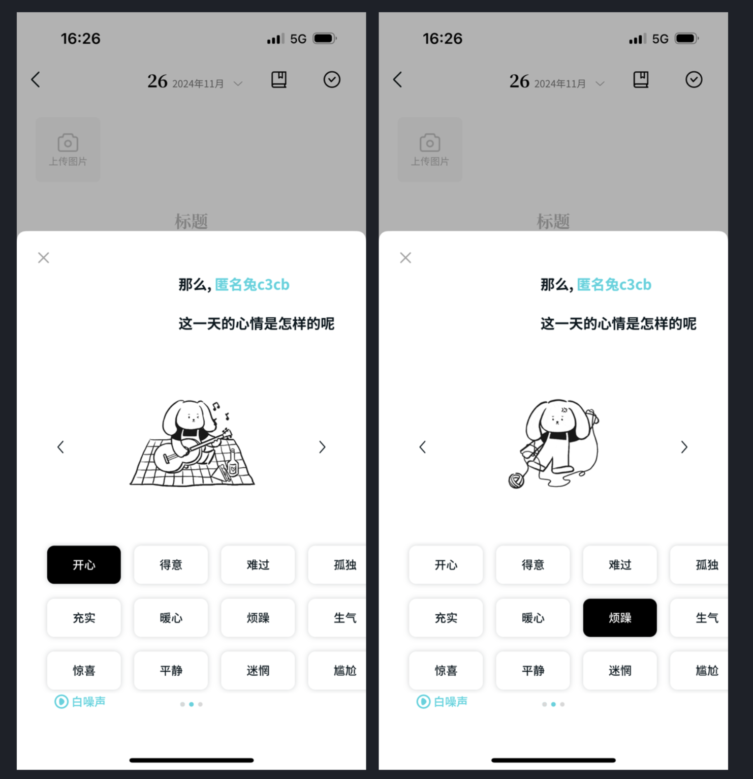 記日記時(shí)選 “心情標(biāo)簽”,是很多人記錄生活的習(xí)慣,但常規(guī)設(shè)計(jì)要么是單調(diào)的文字(“開心”“難過(guò)”),要么是簡(jiǎn)單的表情符號(hào),總少點(diǎn)代入感。