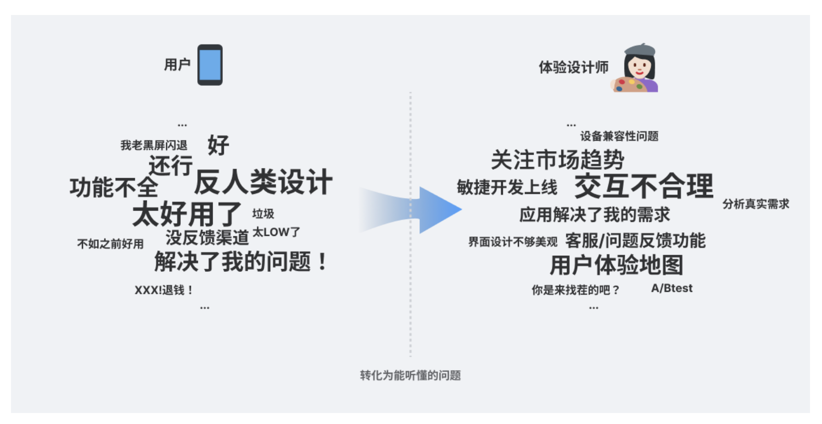 需要注意的是,“體驗好壞” 不是產(chǎn)品團隊主觀判斷的,而是基于用戶反饋(如 “操作太復(fù)雜”)和客觀數(shù)據(jù)(如 “任務(wù)完成率僅 40%”)綜合評估。但體驗本身多維度、抽象,需通過具體方法將 “不好用” 轉(zhuǎn)化為 “某個層級的問題”(如 “導(dǎo)航設(shè)計混亂導(dǎo)致用戶找不到功能”),才能精準優(yōu)化。