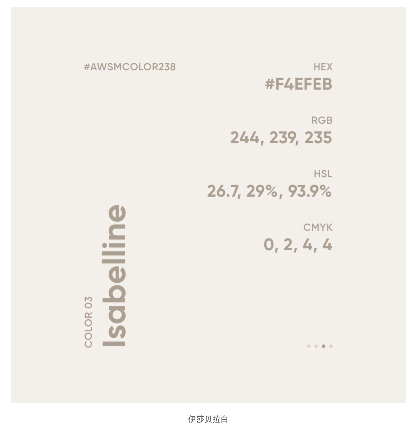色值 #F4EFEB 的伊莎貝拉白,是介于灰白與淺米色之間的暖調(diào)白色,低飽和度的特質(zhì)讓它自帶一種歲月沉淀的溫潤感。這種顏色的名字源于一個充滿獵奇色彩的傳說:17 世紀(jì)初,哈布斯堡王朝的伊莎貝拉公主為等待出征的丈夫凱旋,發(fā)誓三年內(nèi)不換洗內(nèi)衣,最終衣物形成的色調(diào)被稱為 “伊莎貝拉白”。