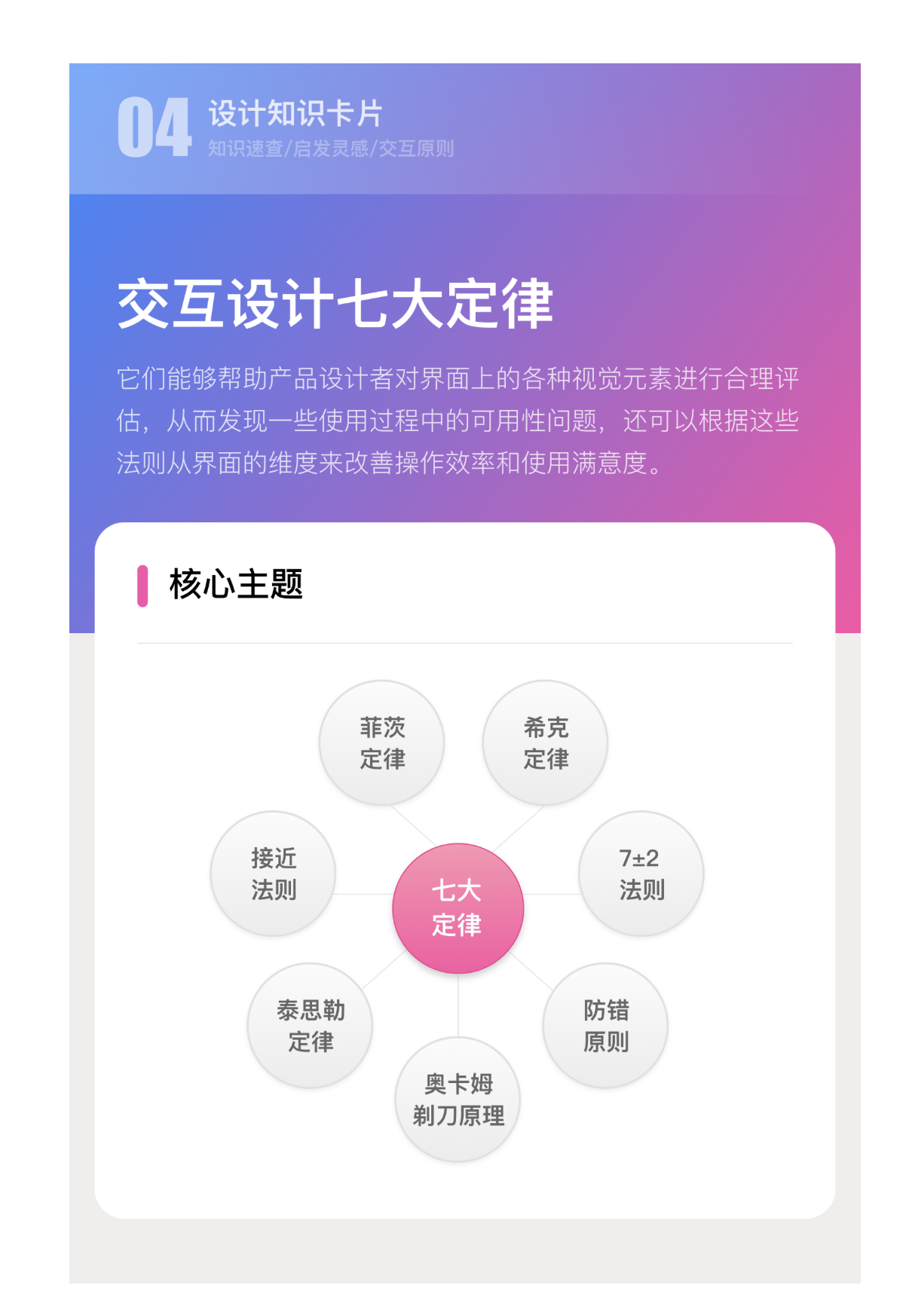 交互設計的本質,是搭建人與產品之間的順暢橋梁。正如 “交互設計之父” 阿蘭?庫珀所言:“除非有更好的選擇,否則就遵從標準”。那些經過時間驗證的交互設計定律,正是這樣的 “標準”—— 它們從人類認知規律、行為習慣出發,為產品設計者提供了可落地的指導原則,幫助規避可用性問題,提升操作效率與用戶滿意度。以下是對七大核心定律的深度解析與實踐應用指南。