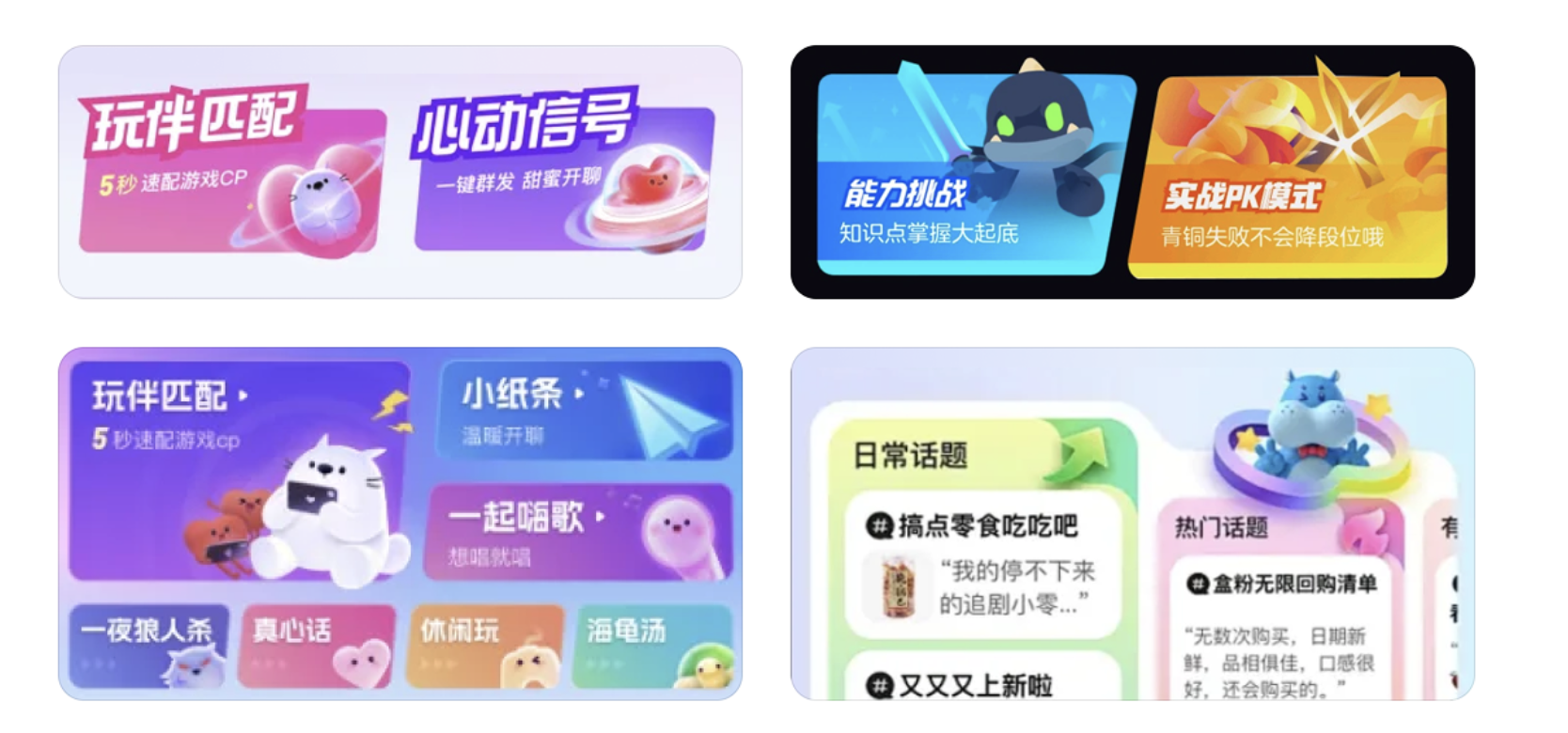 比如社交 APP 的互動(dòng)卡片,給 “連麥開(kāi)黑”“玩伴匹配” 卡片做 5° 的輕傾斜,瞬間比旁邊的矩形卡片更吸睛,又不會(huì)影響布局和實(shí)現(xiàn)。