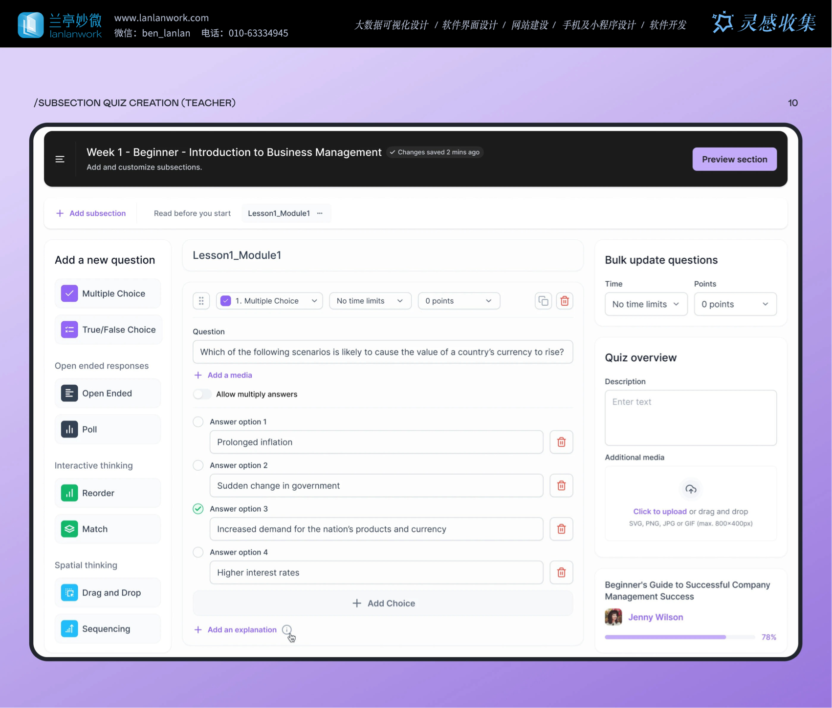 通過數(shù)據(jù)驅(qū)動、AI輔助設(shè)計、技術(shù)落地和持續(xù)迭代,蘭亭妙微為軟件開發(fā)公司結(jié)合AI工具的力量打造高端網(wǎng)站體驗,讓工具為我作用,讓設(shè)計決策有依據(jù)、交互更順暢、數(shù)據(jù)更可讀、體驗可持續(xù)優(yōu)化。