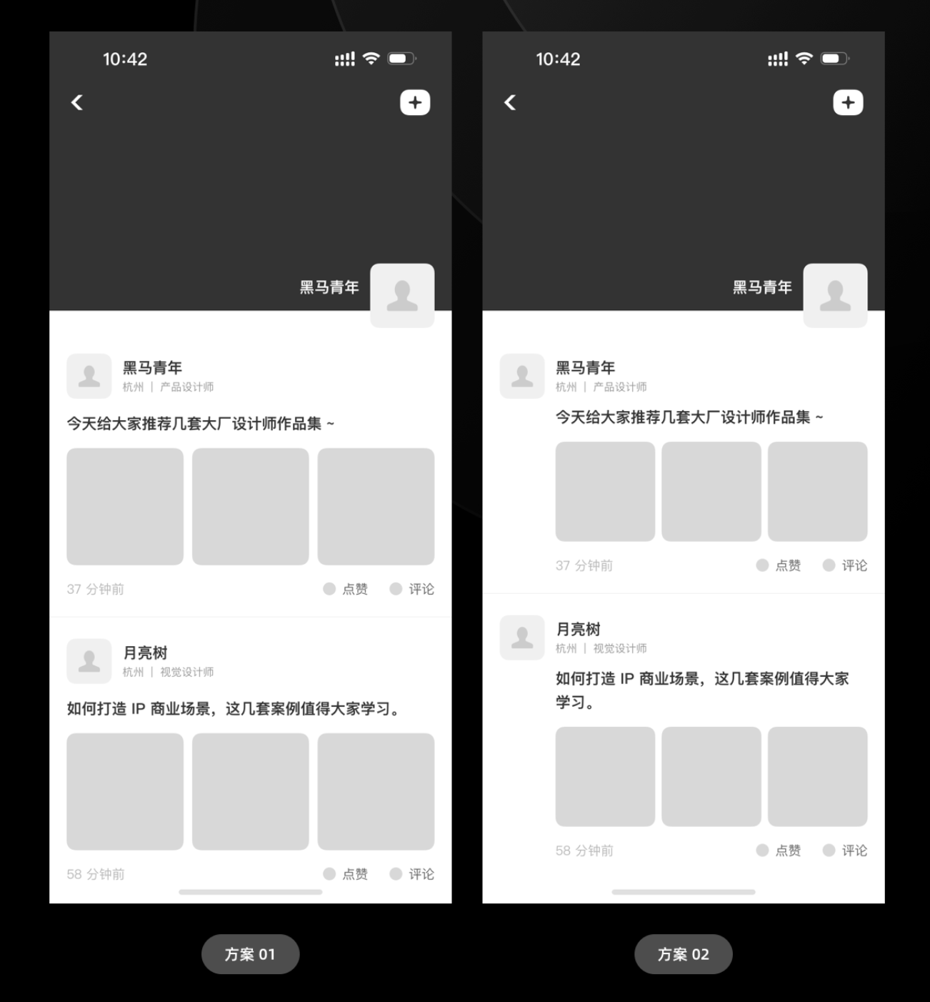 • Ҏ 02Q左侧展C发布者头像与늧Q右侧展C动态内容,强化用户之间的关联感