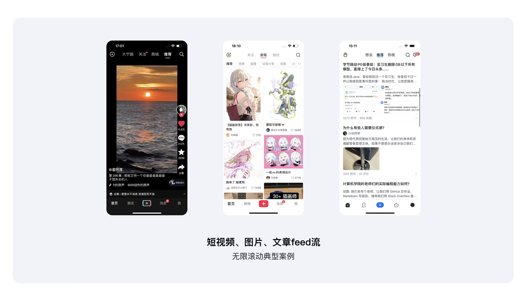 无限滚动是短视频和各cd容^台的核心(j)设计之一Q它通过法实时推送新内容Q彻底消除了(jin)传统面的翻|钮和内容l点。只要用户不停下滑动的手指,屏幕上就?x)一直出现新的内容,q种设计让用户失M(jin)?“内容边界” 的感知,L着 “下一条说不定更有?rdquo; 的期待?/div>
