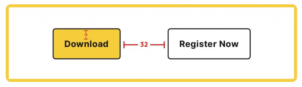 在上圖的案例中,設計師盡可能使用 8 的倍數來定義所有的設計參數,包括按鈕的長寬尺寸、按鈕的內邊距(Download距離按鈕頂部的內邊距)、按鈕和按鈕的間距等。8 點網格可以進一步降低設計師的決策難度,提升設計效率。